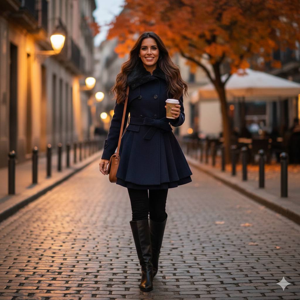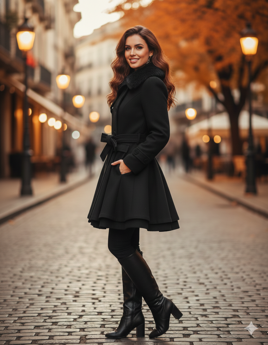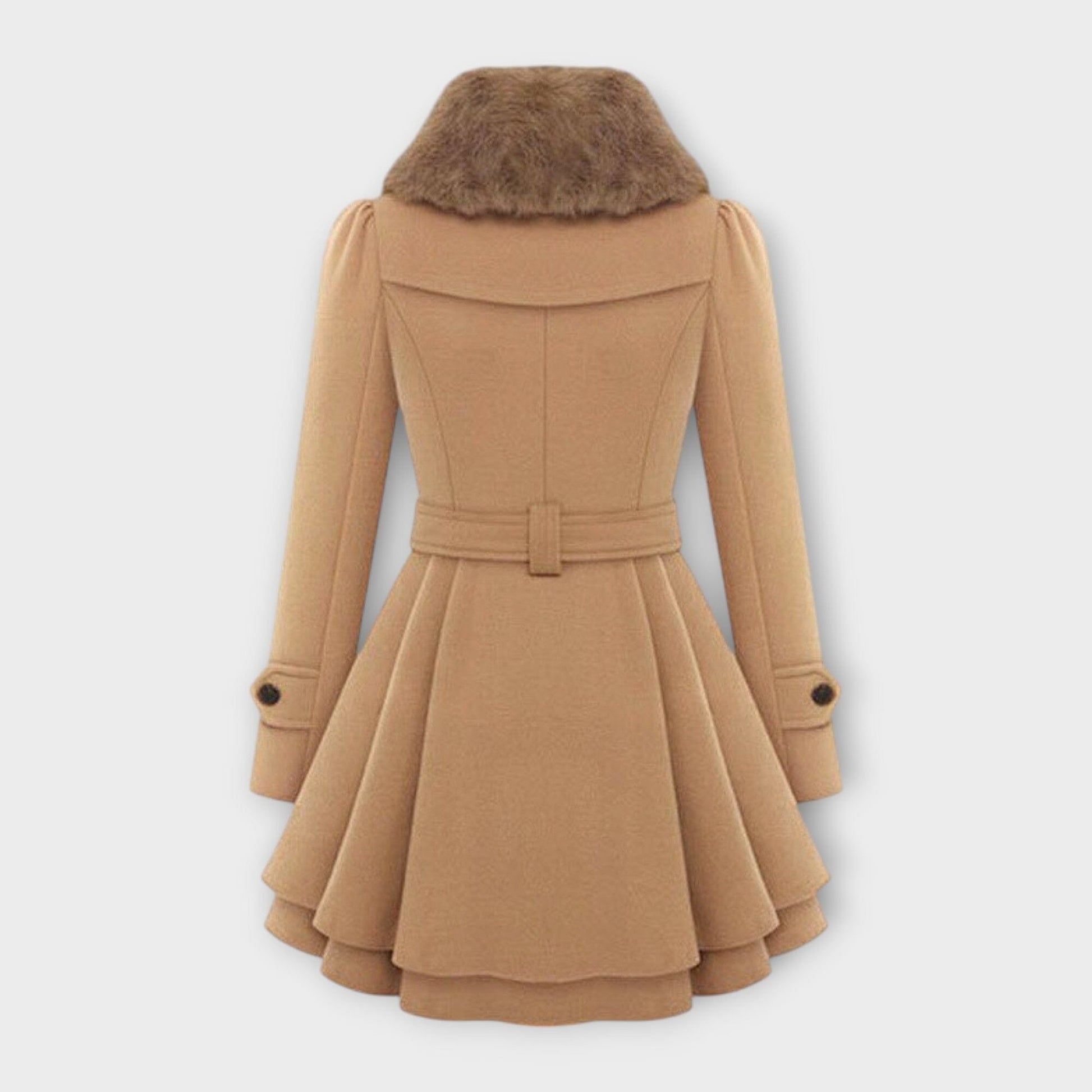 ¡Define tu invierno con elegancia! ✨ Este abrigo de corte evasé no solo te abriga con su tejido premium, sino que estiliza tu figura con su cinturón ajustable y su cuello de pelo suave que aporta un toque de lujo. El diseño de doble botonadura y su falda con vuelo te harán destacar en cualquier ocasión. ¡La prenda ideal para un estilo sofisticado y atemporal!